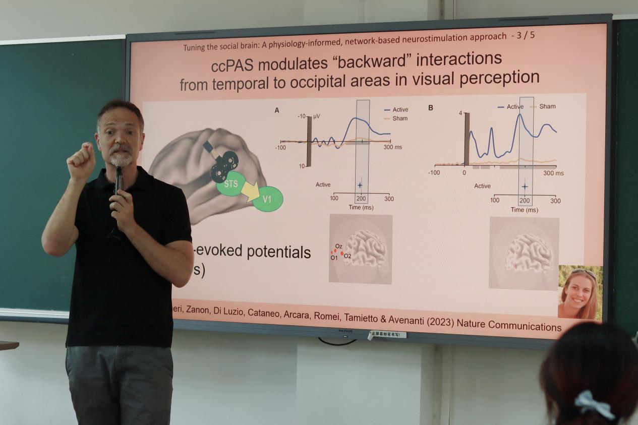 本次讲座系统阐述了认知神经科学研究的最新进展。Avenanti教授深入浅出地介绍了认知神经科学中的脑刺激技术,探讨了从拓扑学到连接学方法、从传统模块主义到连接组学的发展历程,并重点讨论了认知神经科学研究中关于因果性、连接性和可塑性等核心概念。他强调了理解大脑活动如何影响感知和行为的重要性,比较了相关性方法与因果性方法的不同之处,为理解脑功能提供了新的视角。