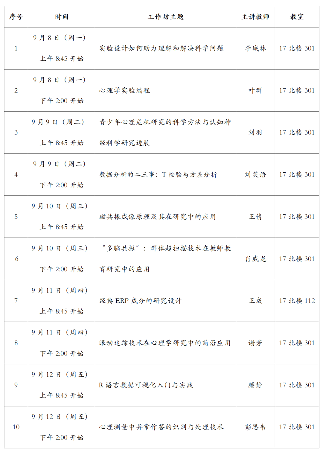 2024级应用心理学全体本科生必须参加本次工作坊培训,另有部分坐席供全校对心理学研究感兴趣的本科生和研究生参加。