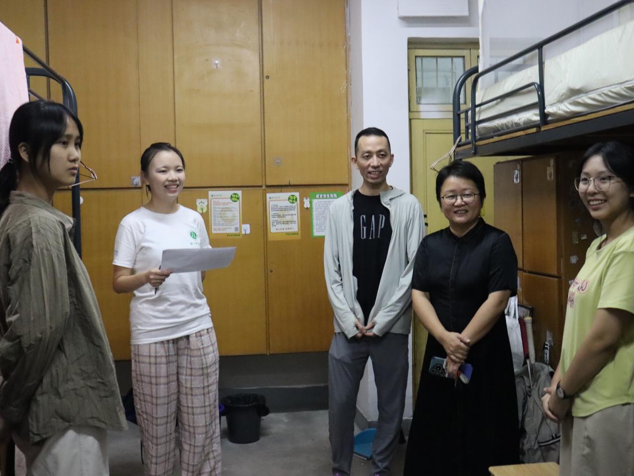 9月15日晚,校党委副书记傅关福一行来到永利234112025级新生寝室看望我院新生,校教务处处长陈敏、校学生处副处长杨雪龙、永利23411院长孙炳海、党委书记马莉等陪同。