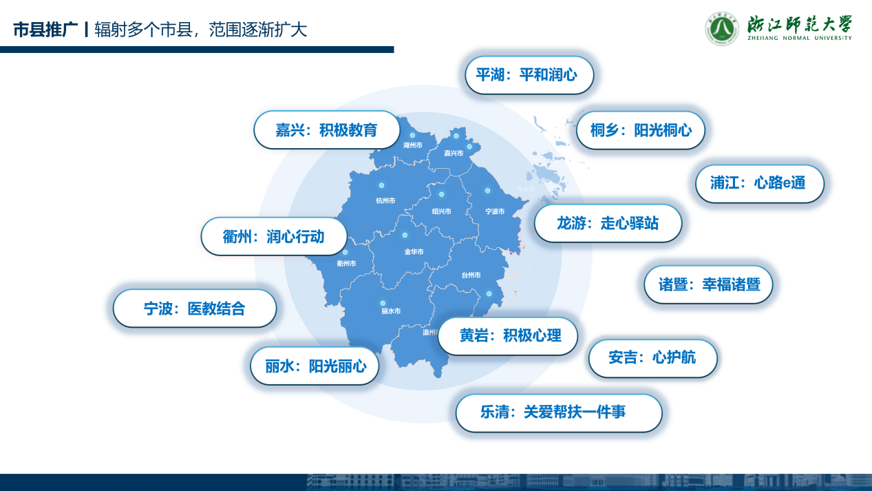 在区域协同与全国推广方面,项目三进西藏、三进新疆,通过建立教育实践基地、公益同步课堂、教师培训与示范课等方式,将“浙江经验”输送到阿克苏、伊犁、拉萨、那曲、贵州毕节等地。同时,项目已在桐乡、浦江、诸暨、安吉、乐清等6个区县开展地方心理健康教育顶层设计,形成“阳光桐心”“心路e通”“心护航”等一批区域品牌,构建了可复制、可推广的“省域—边疆”心理共富新模式。