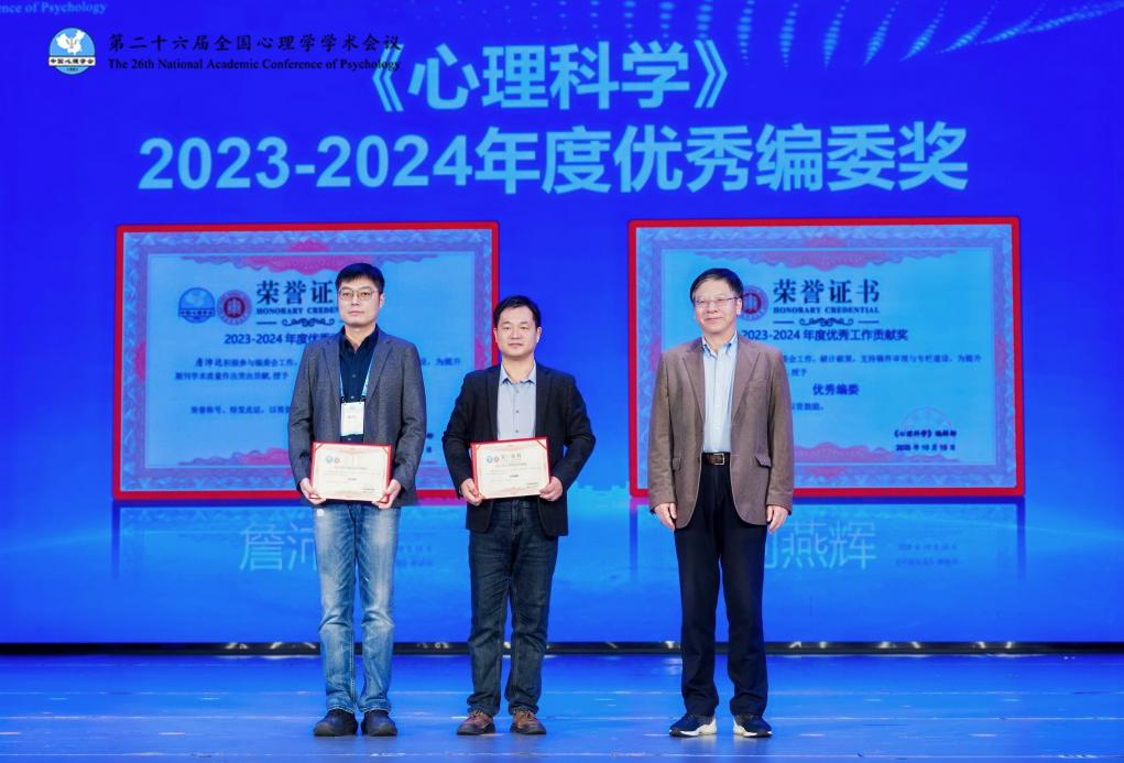 根据学会章程,经中国心理学会第十四届一次会员代表大会投票表决,我院李伟健教授当选为中国心理学会第十四届理事会副理事长。詹沛达副教授荣获“《心理科学》2023-2024年度优秀编委奖”。