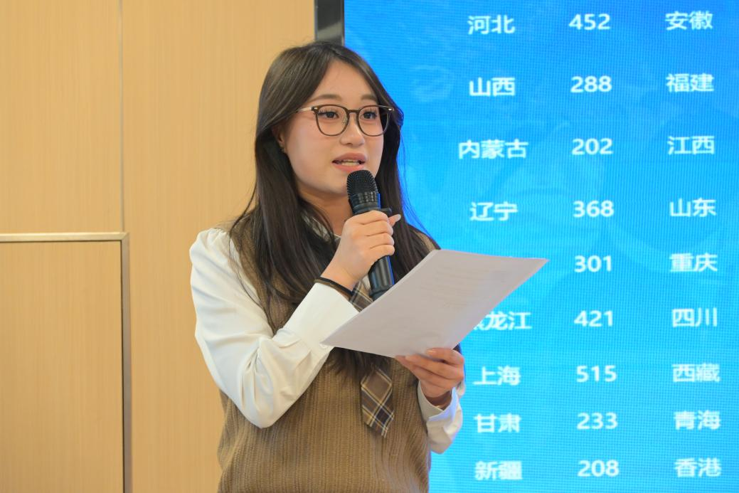 在学子风采展示环节,应用心理学231班窦苑星同学代表团队,对挑战杯国赛特等奖项目《从“心”出发》进行了简要介绍,有力印证了我院学子将课堂所学转化为洞察社会、服务现实的科学力量。