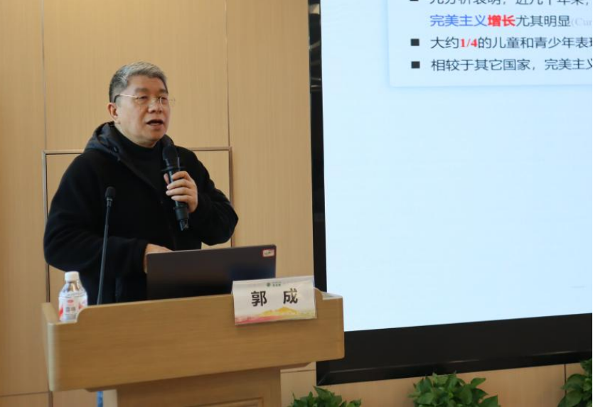 郭成教授作《完美主义的双刃剑效应:心理健康的代价与认知表现的推力》学术报告。报告指出青少年完美主义既有引发焦虑和抑郁的风险,也能在接受不完美反馈时促进认知能力;在中国文化中“自我导向完美主义”更具适应性,希望感可缓解其负面影响。
